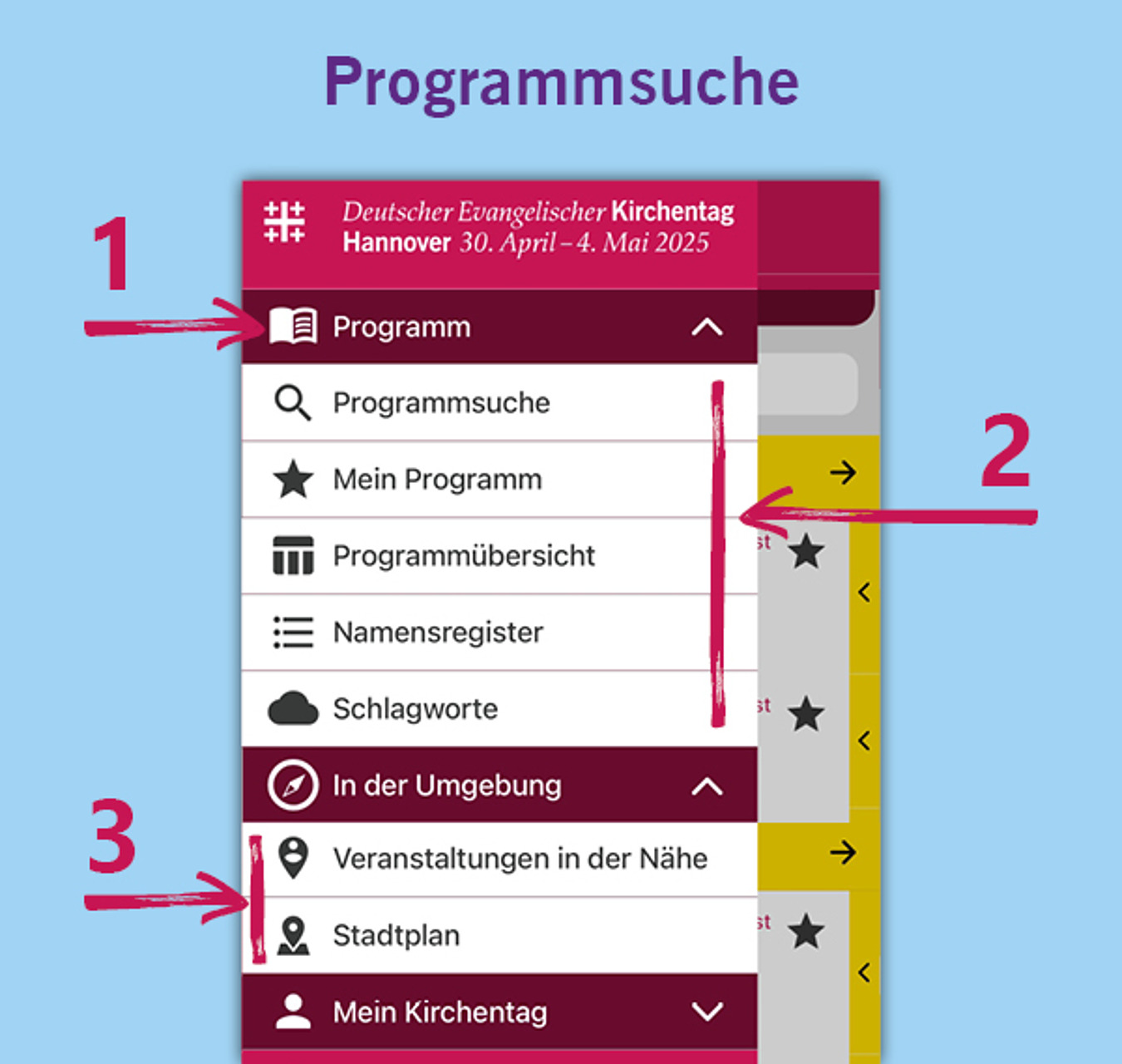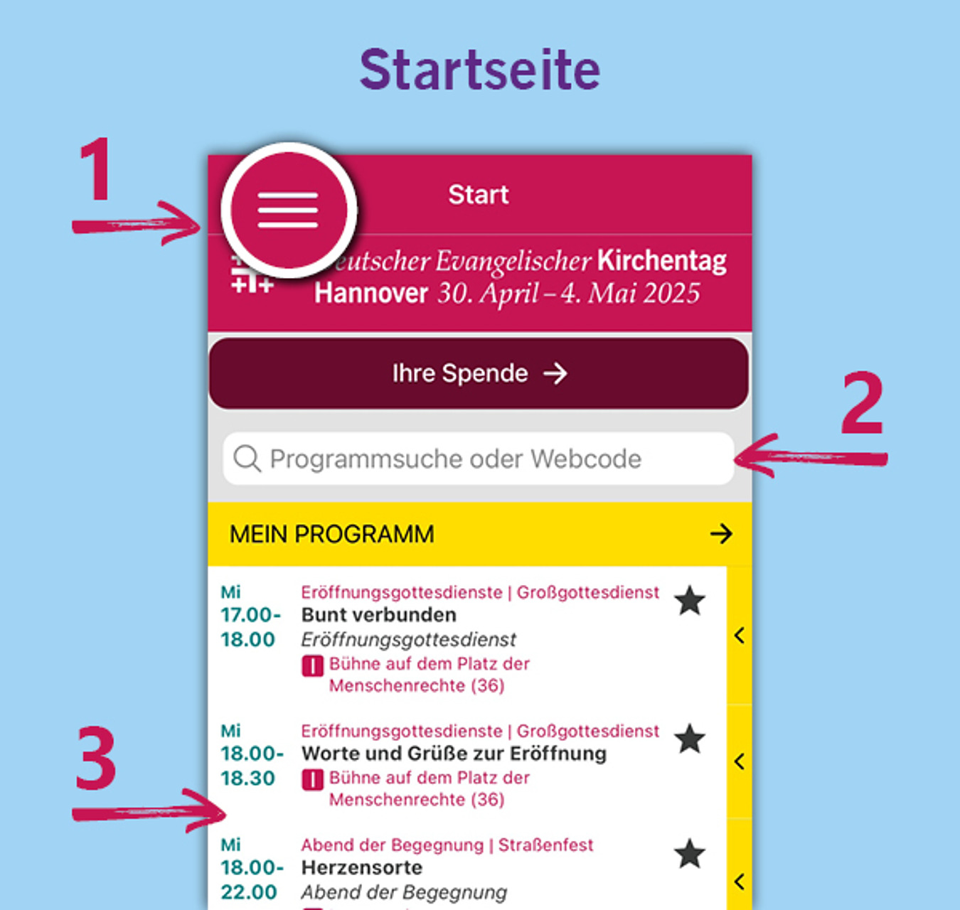 Die wichtigsten Infos immer dabei: mit der Kirchentags-App zum Kirchentag 2025 in Hannover