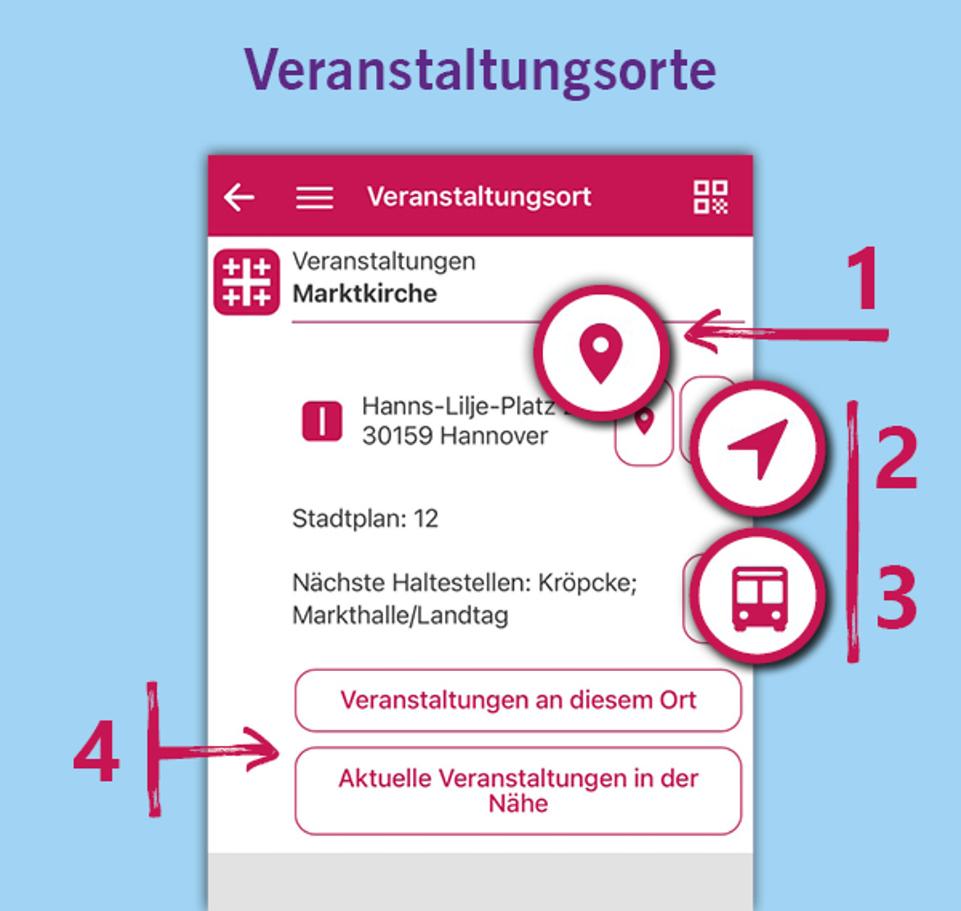- Finden Sie die Veranstaltungs- und Serviceorte des Kirchentages auf dem Stadtplan und navigieren Sie zu Fuß oder mit dem Öffentlichen Nahverkehr dorthin.