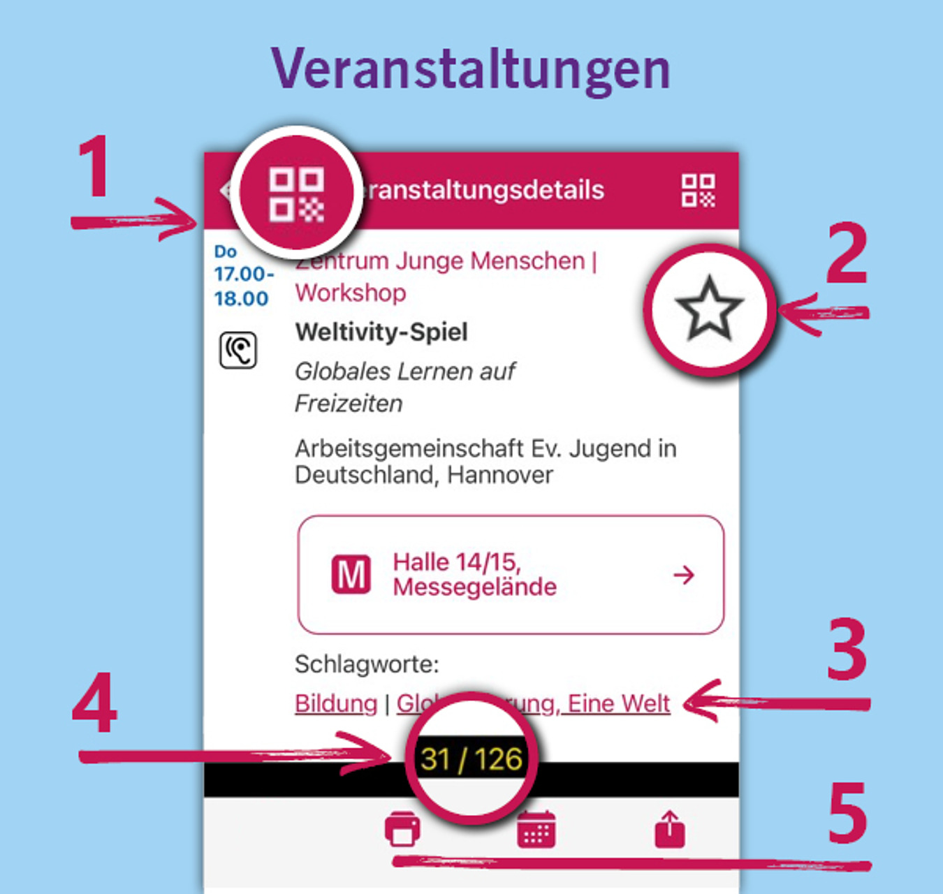Da das Veranstaltungsprogramm vollständig in die App integriert ist, benötigen Sie für Ihre Recherche keine dauerhafte Internetverbindung. Sobald diese aber zur Verfügung steht, werden die Veranstaltungen und Meldungen regelmäßig aktualisiert. Sie haben dadurch keinen hohen Datenverbrauch und bleiben so immer aktuell informiert.