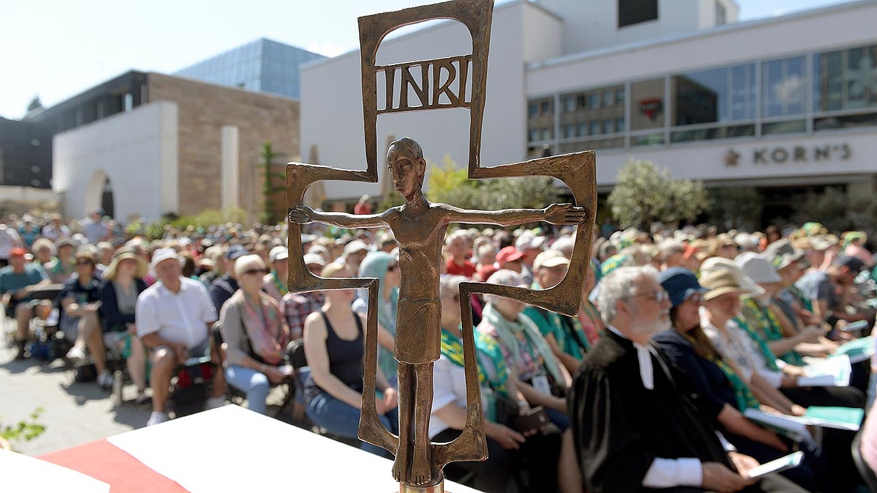 Es sei Gottes Markt der Lebens-Möglichkeiten. Da gehöre nicht nur alles, sondern auch jede:r dazu. „Nichts soll verdrängt werden. Das Sterben nicht, das zu oft hinter den Mauern von Pflegeheimen und Krankenhäusern versteckt bleibt. Der Krieg nicht, der uns erinnert, dass Friede nicht vom Himmel fällt. Das Tanzen nicht, wenn wir uns in Sorgen verbeißen“, führte er aus. Traditionell wird bei jedem Kirchentag bei Eröffnungs- und Schlussgottesdienst in Leichter Sprache gepredigt, denn der Kirchentag ist möglichst barrierefrei.